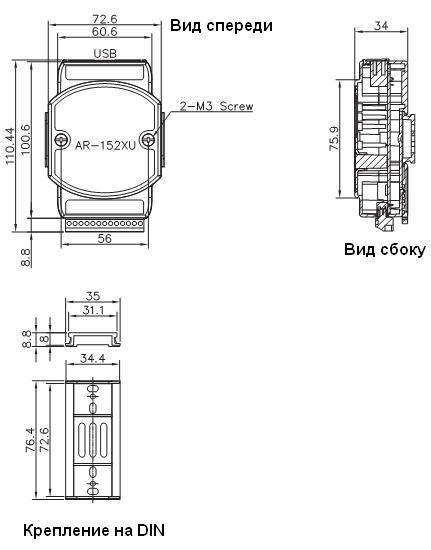 AR-1520U- Изолированный преобразователь интерфейса USB в RS-485